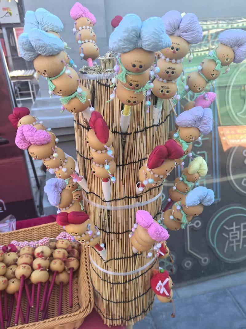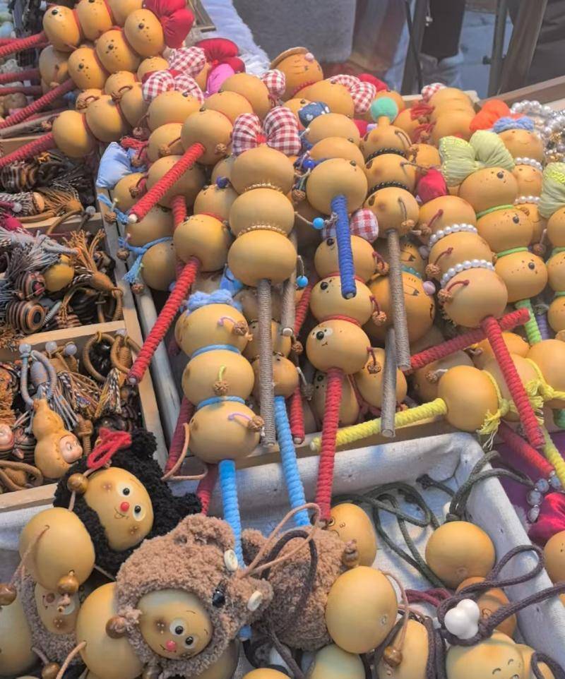 温润金黄的葫芦化身憨态可掬的小玩偶云开体育,搭配竭诚小帽、彩色绳结等防止,轻晃便发出圆润声响。近日,一串串样子憨态可掬、防止俏皮的葫芦拨浪饱读在外交媒体上赶紧走红,成为备受年青东谈主追捧的“新宠”。不少东谈主因此去北京潘家园旧货阛阓打卡、购买。